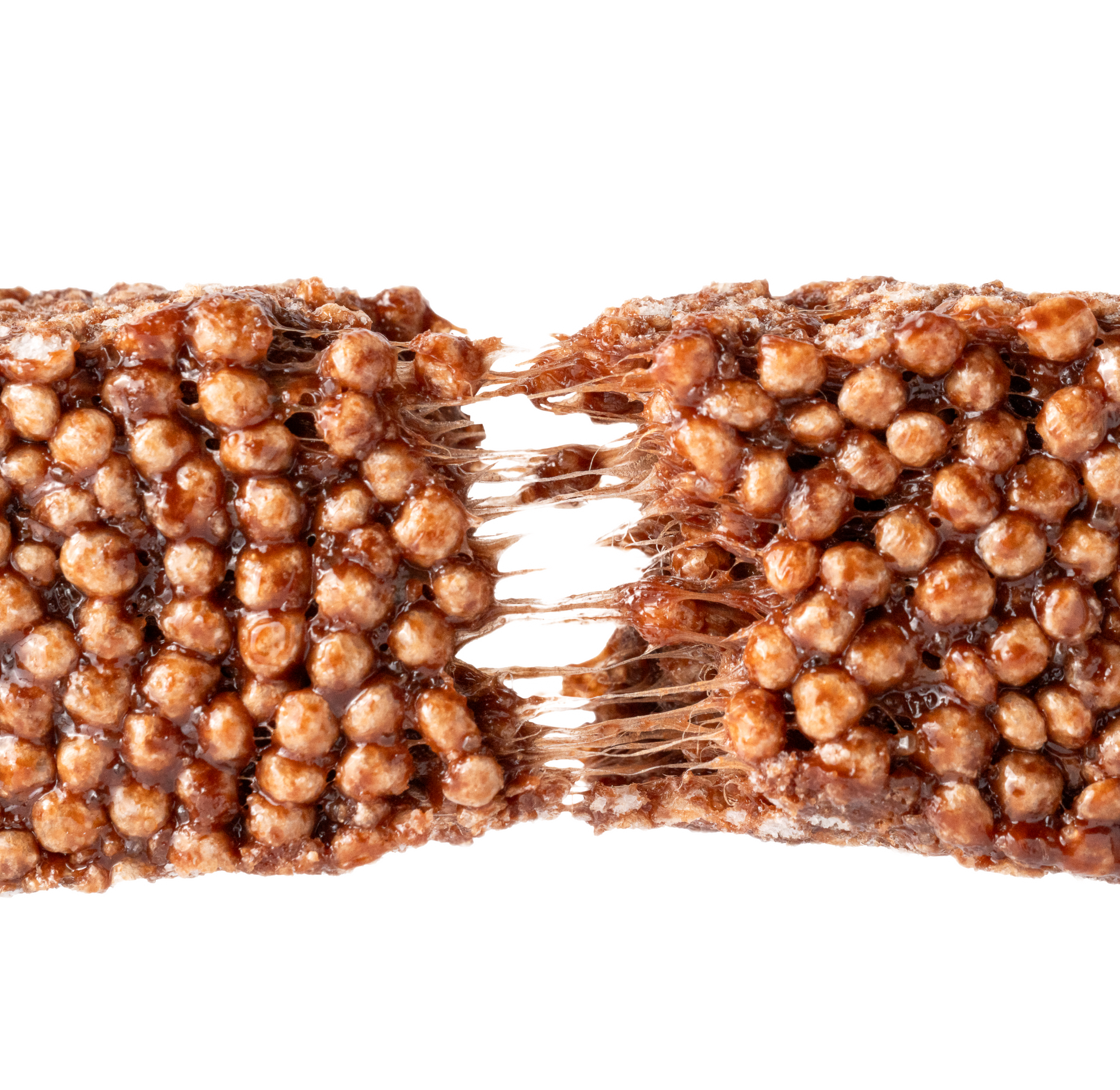 Crispies de arroz, açúcar líquido invertido, chocolate amargo, mel, xarope de glucose, maltodextrina, açúcar demerara, óleo de girassol e sal marinho.